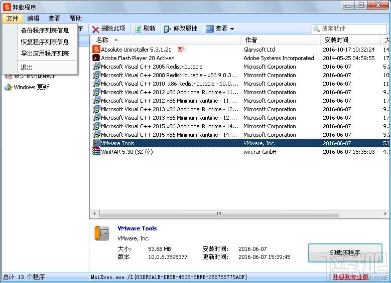 AbsoluteUninstaller是类似于标准的Windows添加/删除卸载工具,但更powerful。可以卸载一些windows系统自带的添加/删除程序无法删除的顽强程序,而且更加完全干净。AbsoluteUninstaller还可以在数秒内清理系统垃圾文件,提高系统性能。与强大的免费系统优化工具GlaryUtilities出自同一公司。