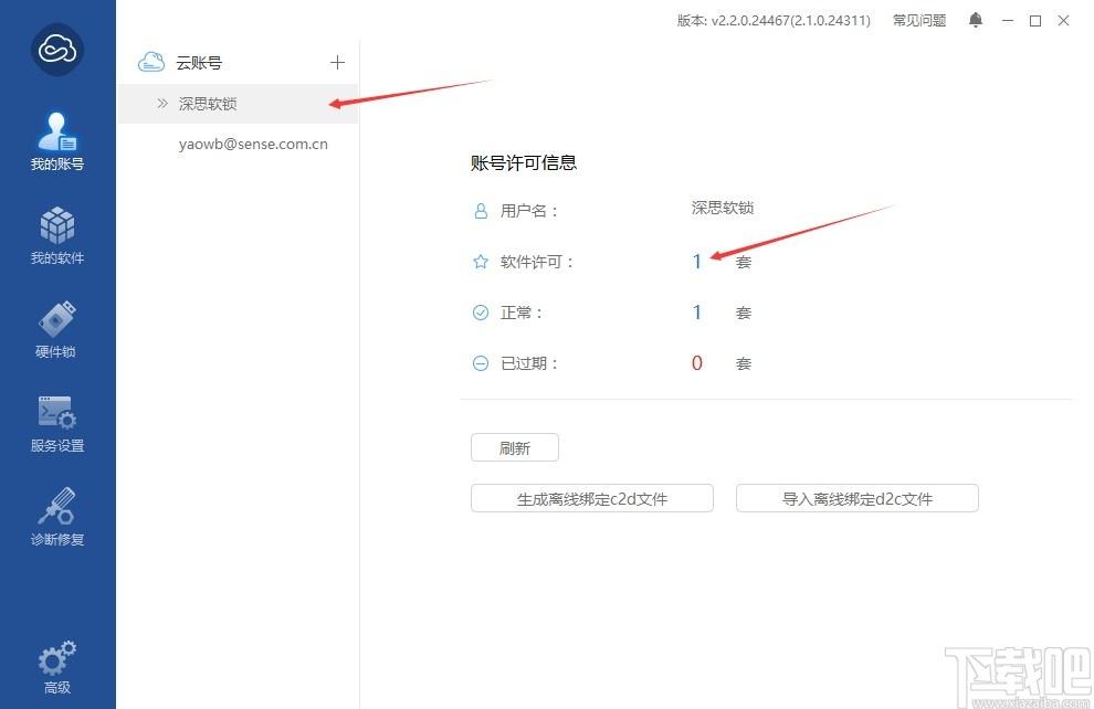 当您的电脑可以正常联网,登录云账号,可以将账号中绑定的软锁许可绑定到本地。流程如下:
