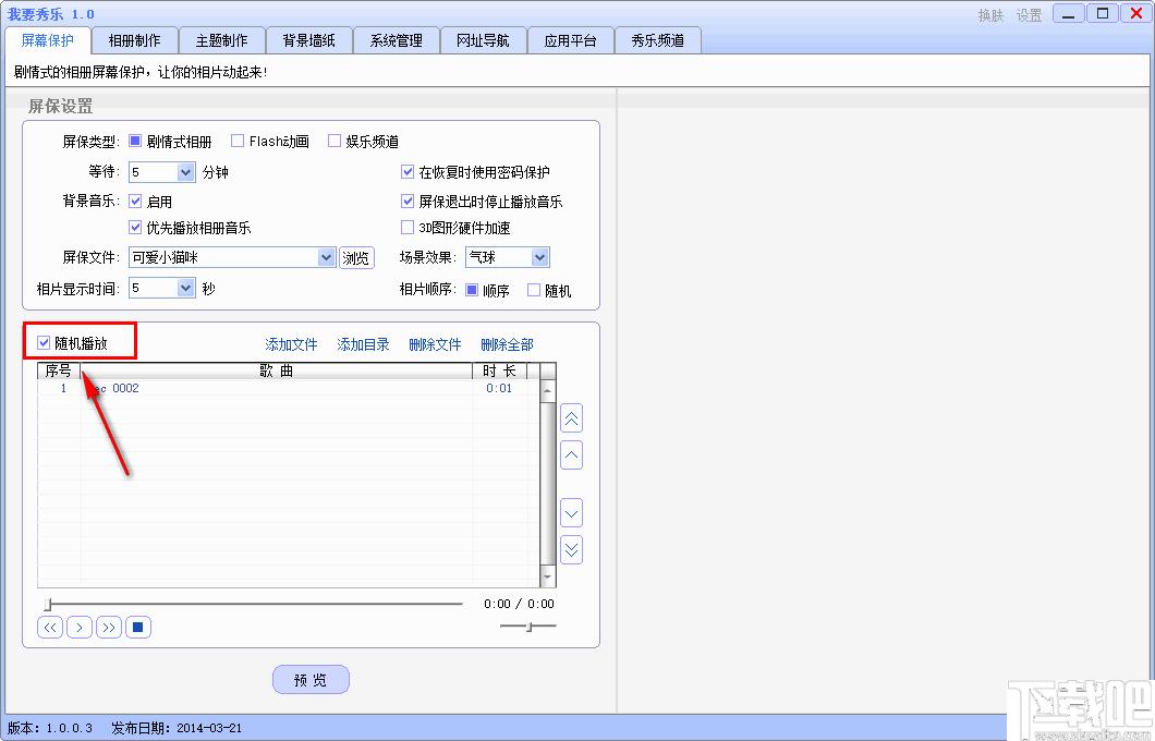 我要秀乐是一款功能强大的屏保制作工具和相册制作工具,当然这款工具所包含的功能不仅于此,它还拥有很多实用功能,这些功能可以在诸多方面为我们提供帮助;如果您觉得计算机的屏保没有特色,想要自己制作屏保的话,那么这款工具千万不要错过;通过该工具您可以创建剧情式的相册屏保和动画屏保,您还可以灵活的设置屏保等待时间,场景效果以及相片播放顺序等;不管您是制作屏保,相册还是系统主题,通过我要秀乐这款软件制作都是很轻松的;需要的朋友可以在本站下载使用。