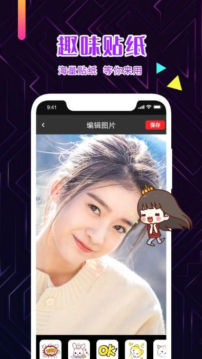 卖萌、搞怪、节日、可爱......各种风格的创意贴纸供你选择,一秒钟带你变身!